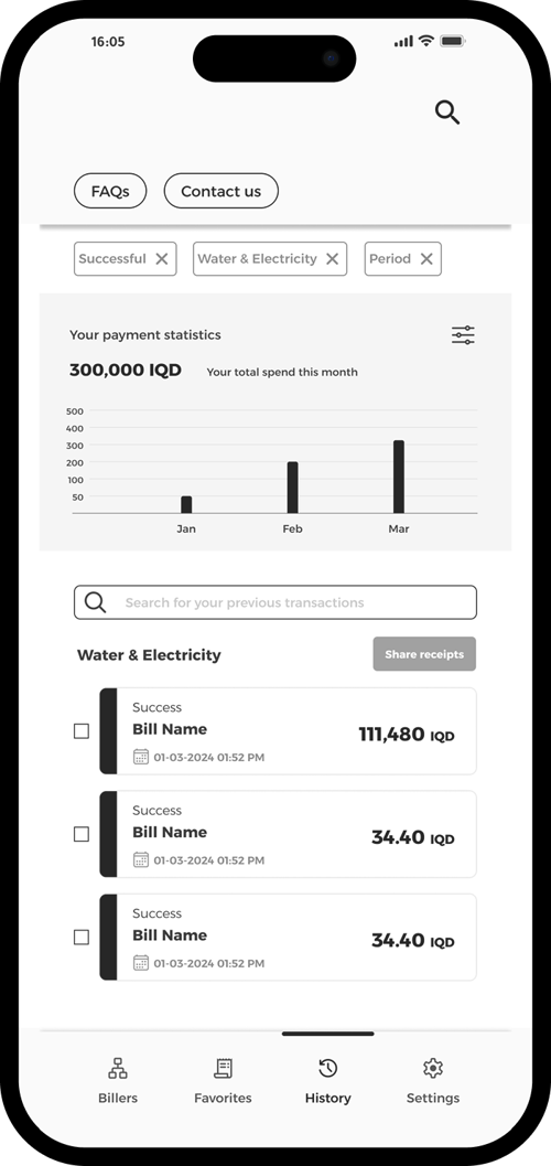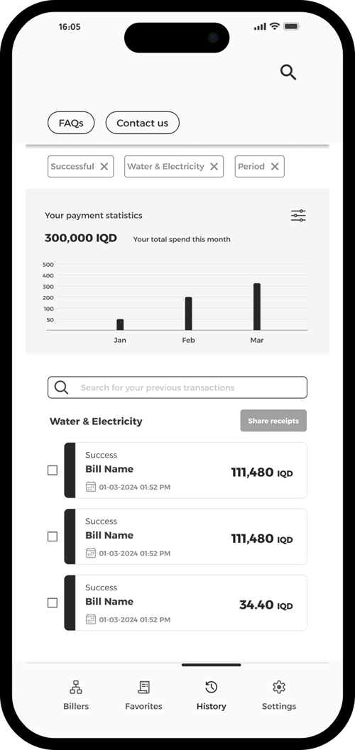 Tap any receipt to view your payment details.