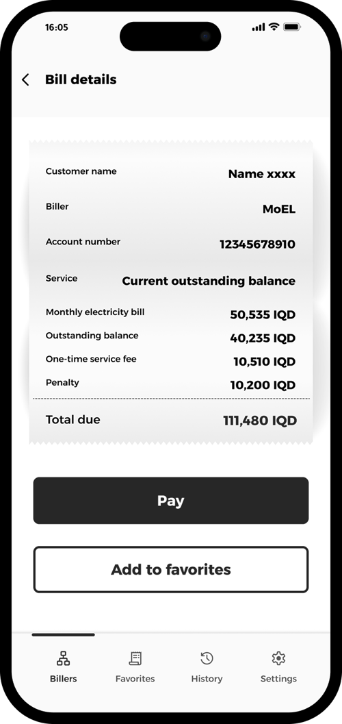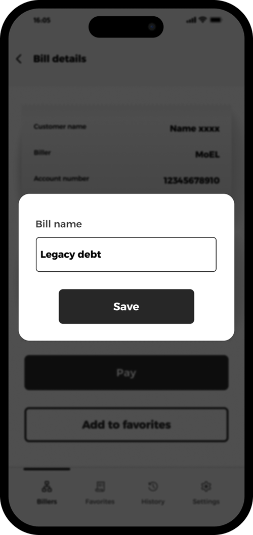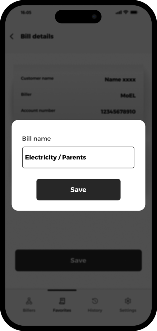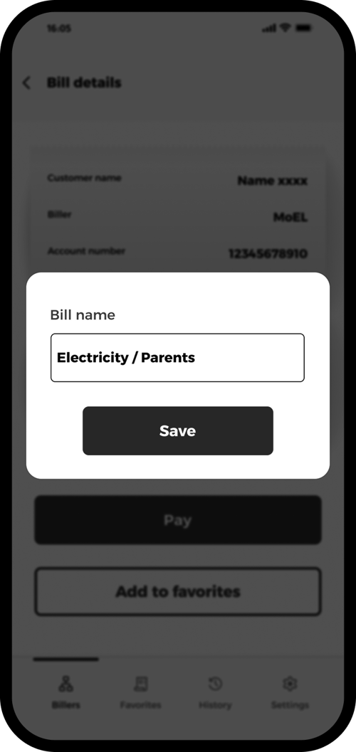 Check your bill details and tap “Add to favorites”.