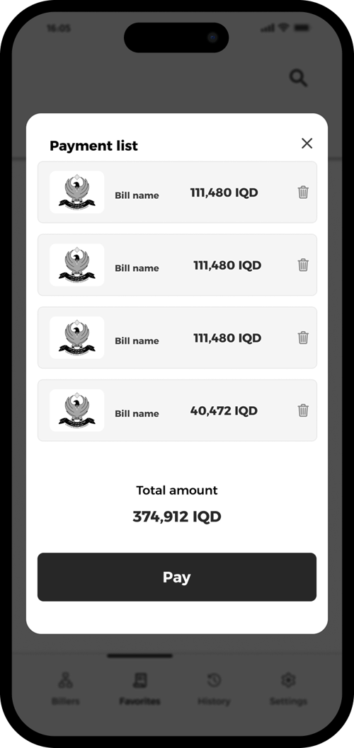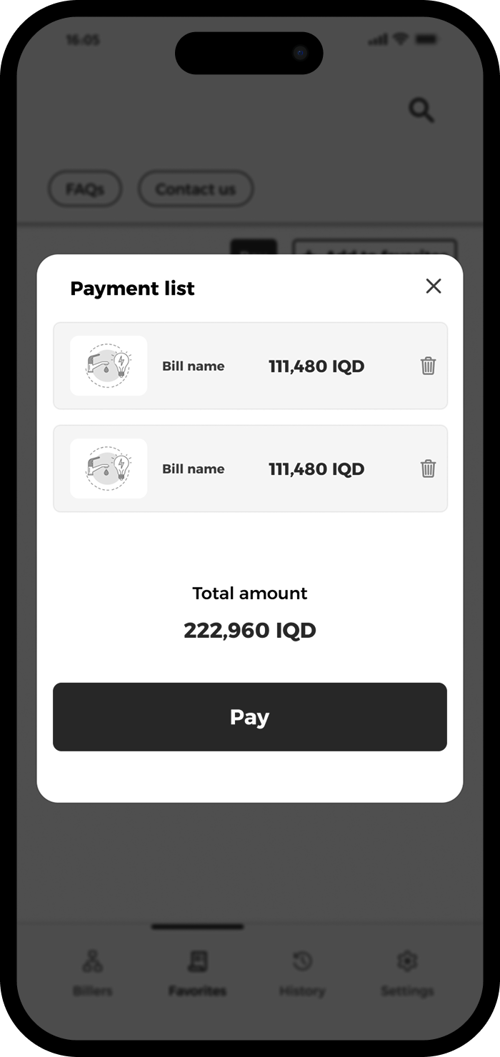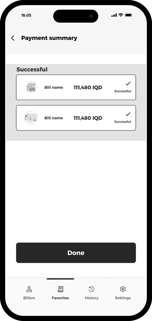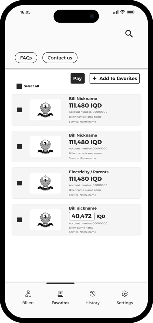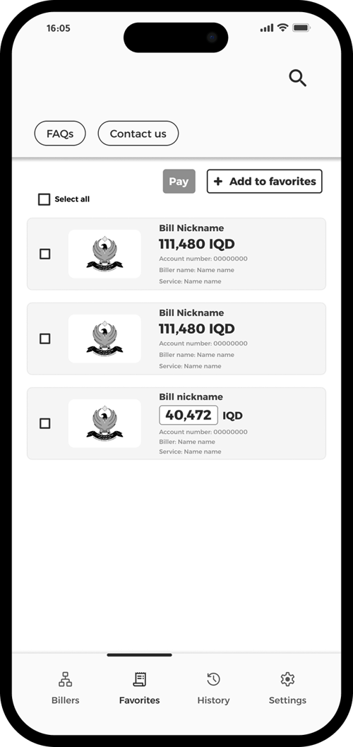 Return to Favorites, select the bills you want to pay, and tap “Pay”.