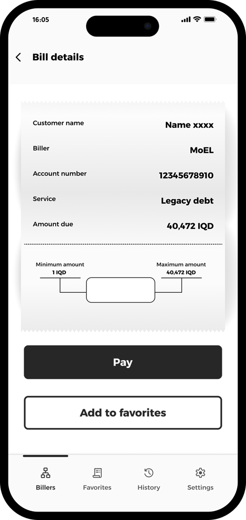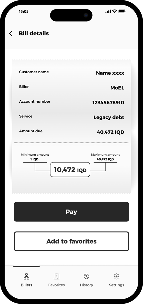 Input the amount you want to pay, ensuring it falls in the defined range and tap “Add to favorites” for easy access.
