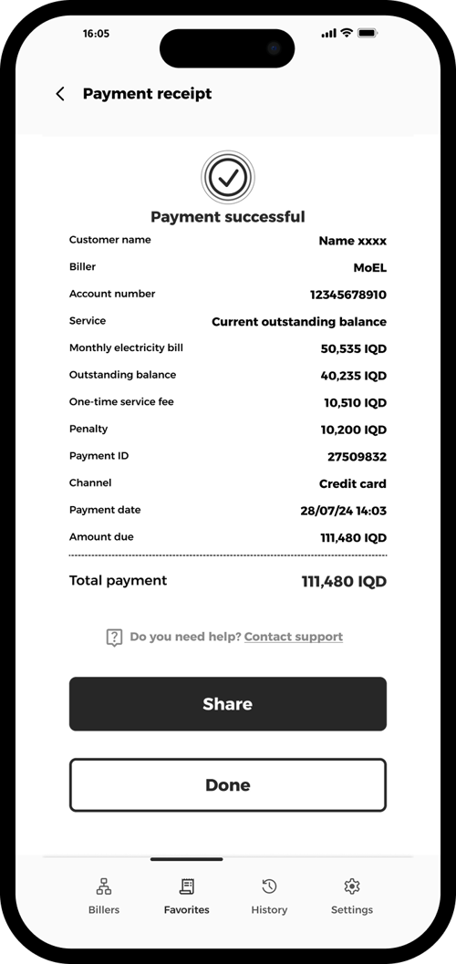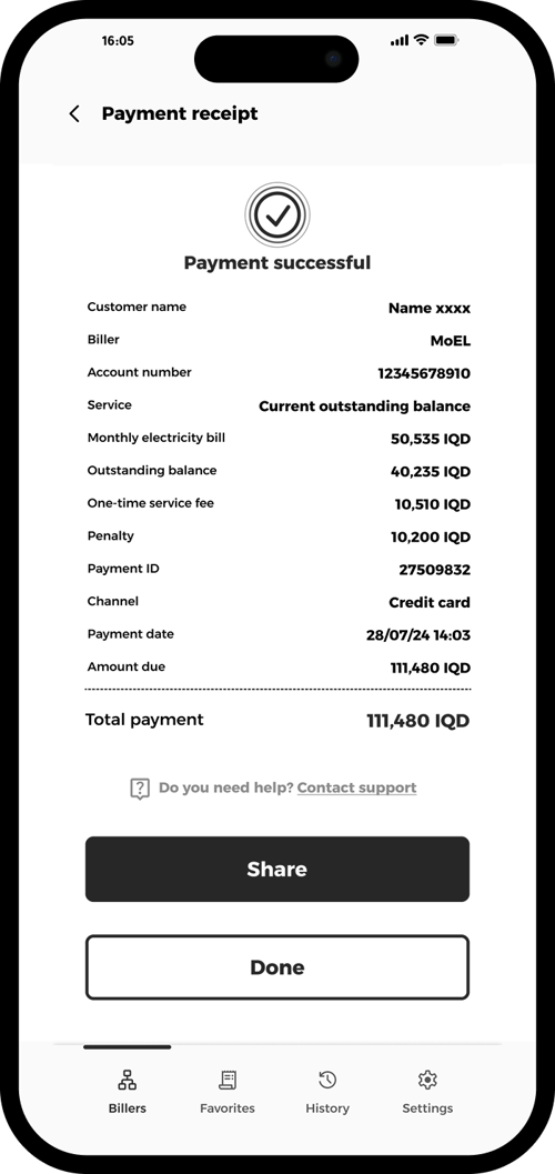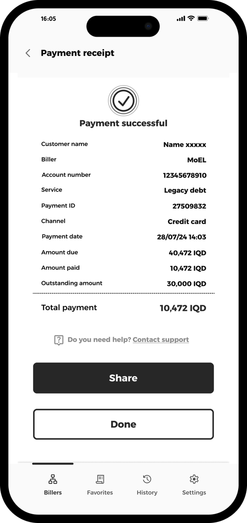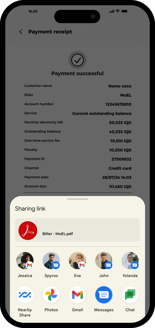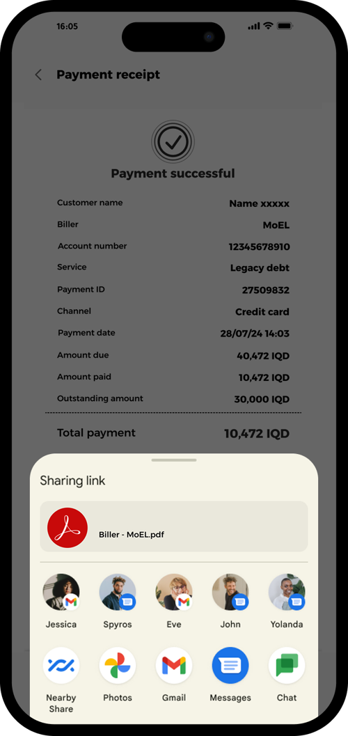 Tap to download your receipt or share it via your preferred channel.