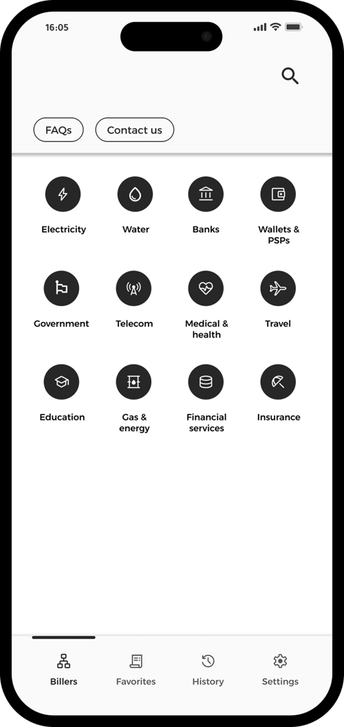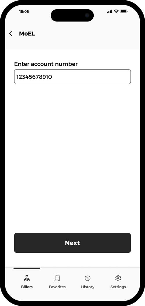 Select Ministry of Electricity from the billers list to begin.
