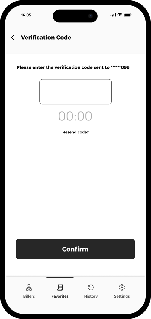 Access your Favorites tab to manage or add saved bills. Tap “Add to Favorites” to save a new bill for easy access.