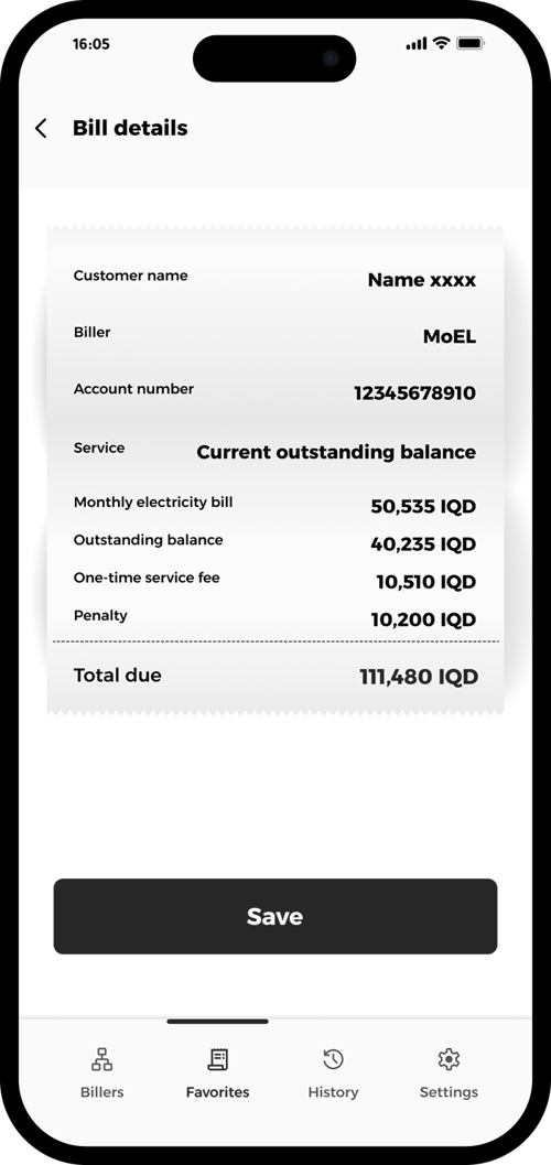 Check your name, bill details and total amount due and tap “Save” to proceed.