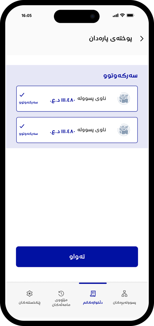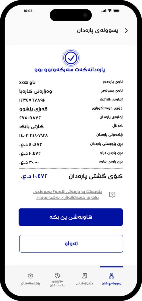 پارەدانەکەت سەرکەوتوو بوو!