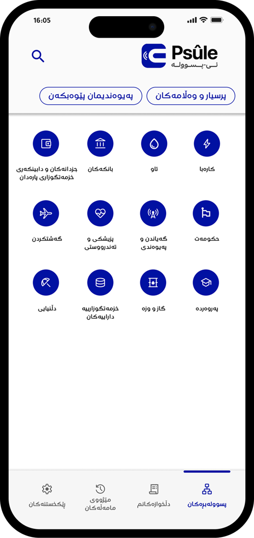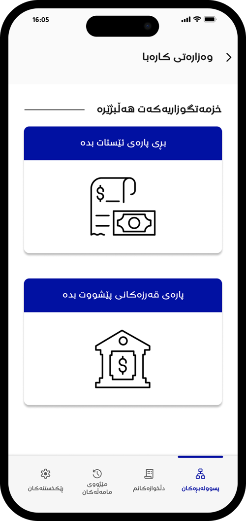 لە بەشی پسوولەبڕەکان وەزارەتی کارەبا هەڵبژێرە.