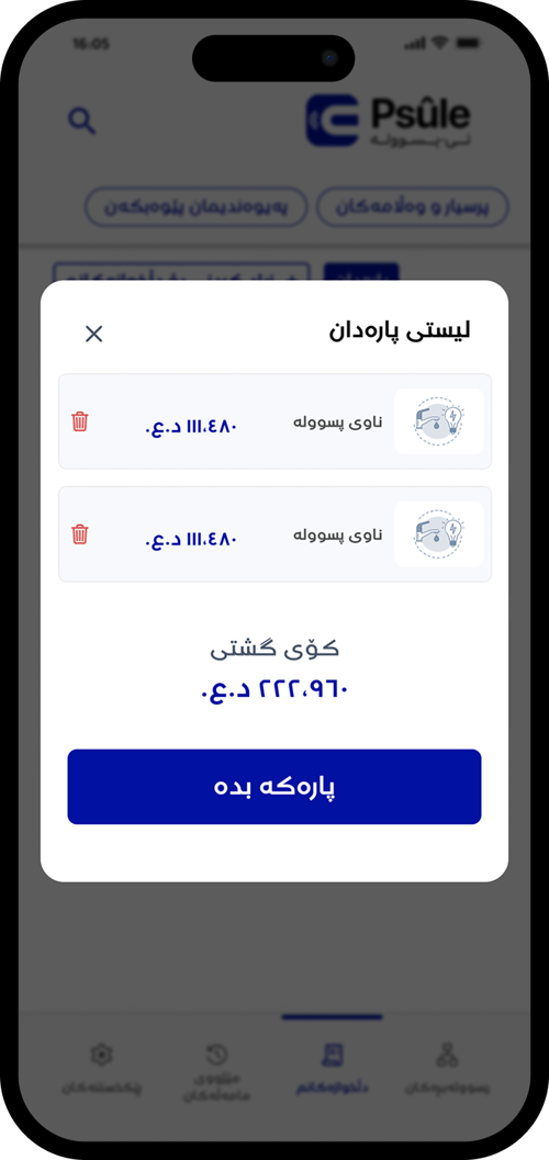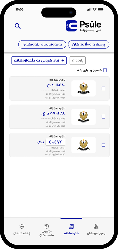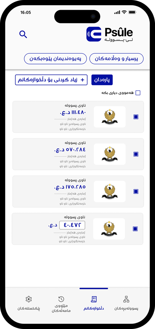 تەواو، ئێستا تۆ ئامادەیت! سەیری پسوولەبڕەکان بکە و پارەی پسوولەکانت بدە لە ڕێگای ئی-پسوولە.
