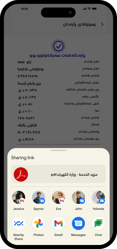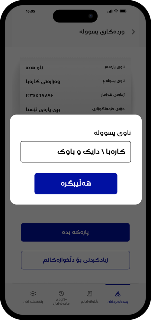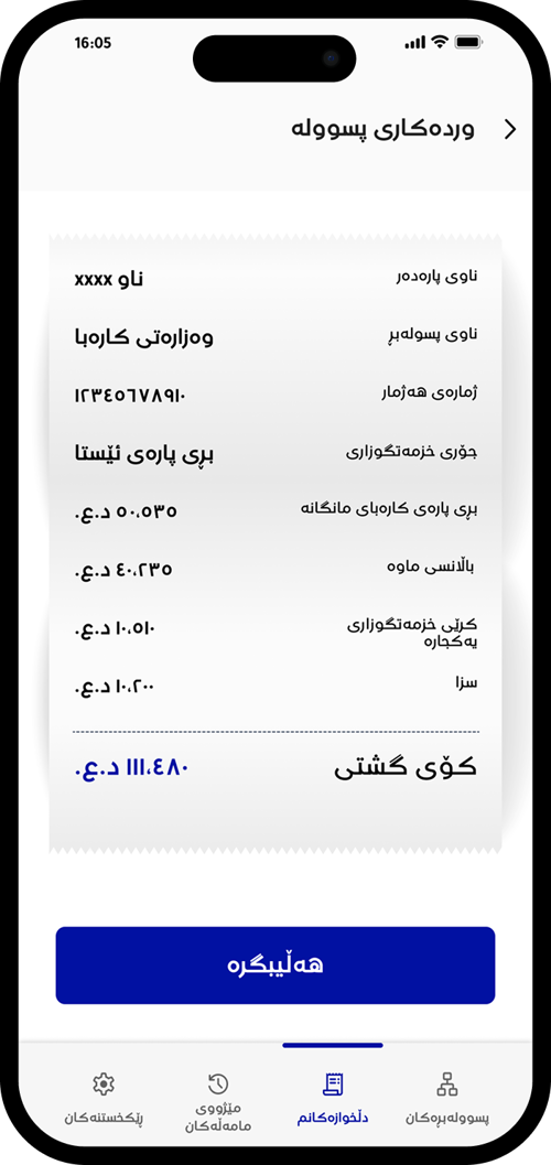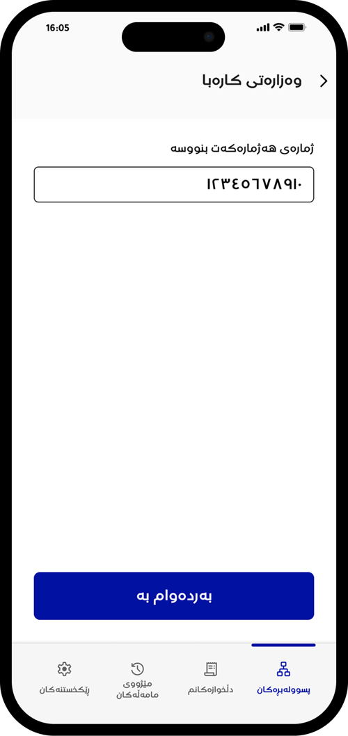 ژمارەی هەژماری وەزارەتی کارەباکەت بنووسە تاکو وردەکارییەکانی پسوولەکەت ببینیت.