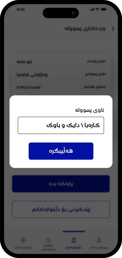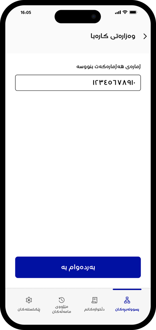 ژمارەی هەژماری وەزارەتی کارەباکەت بنووسە تاکو وردەکارییە کانی پسوولەکەت ببینیت.